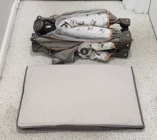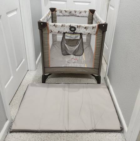 This Graco Pack 'n Play Play yard Portable Playard Playpen Crib was used at grandparents home. It is in excellent condition. Unisex color, great for boys and girls. Comes with detachable diaper storage / storage pouch great for wipes, pacifiers, favorite stuffies and more. Easy to use, clean, very useful. Easy to store away or take on the go. From a pet free, smoke free, clean home.