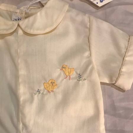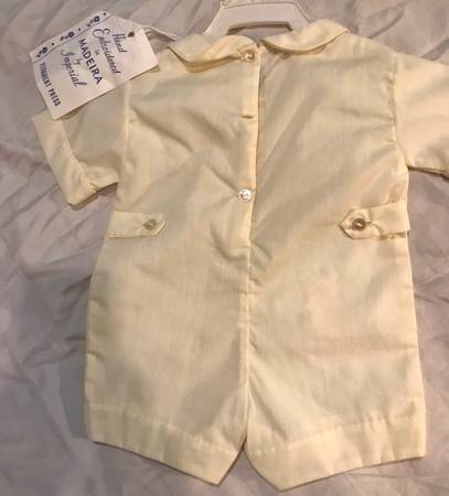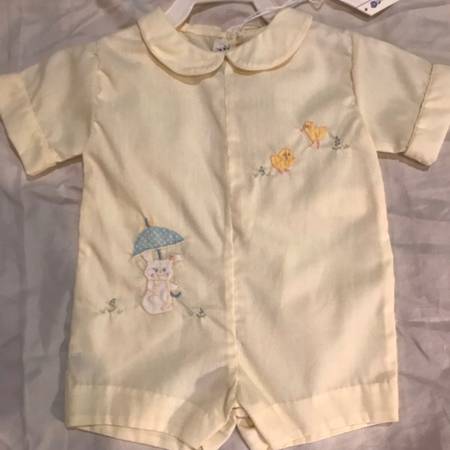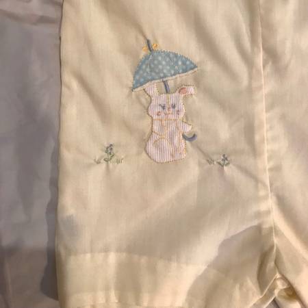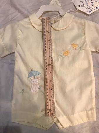 Hand embroidered romper. The label says size M but shoulder to crotch is 12" so it is likely preemie or newborn. Nonsmoking no pets home. CASH or Venmo only. Please include a few proposed times to...