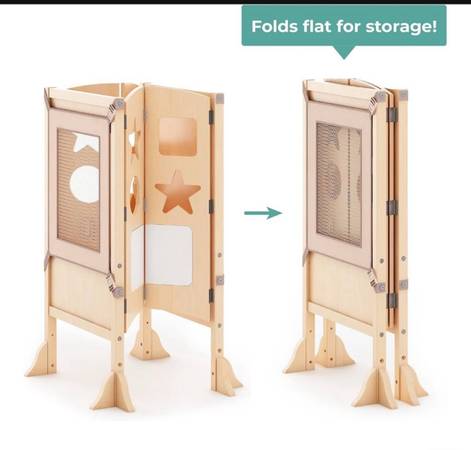 Adjustable height Fold easily Sturdy and flat design Used only a few times and in new-like condition