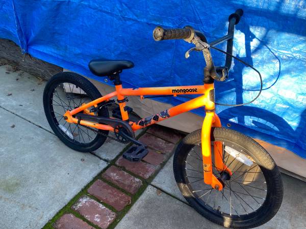MONGOOSE LEGION L18 BMX BIKE 18 INCH WHEELS REAR HAND BRAKE FREE WHEEL REAR HUB IN GOOD WORKING CONDITION MUST SEE SEE ALL THE PICTURES CONTACT TOM AT