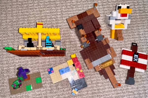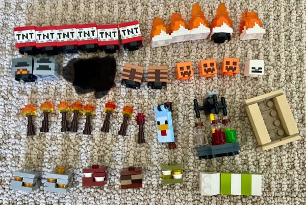Prices for separate items Figures: 30$ Tools: 20$ Mobs: 20$ Buildings: 25$ Minecraft Blocks: 25$ Random Minecraft Stuff: 15$ Or best offer Pictures in order of stuff for sale