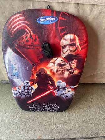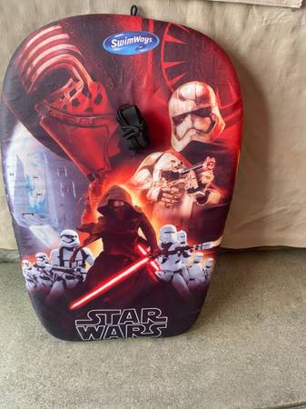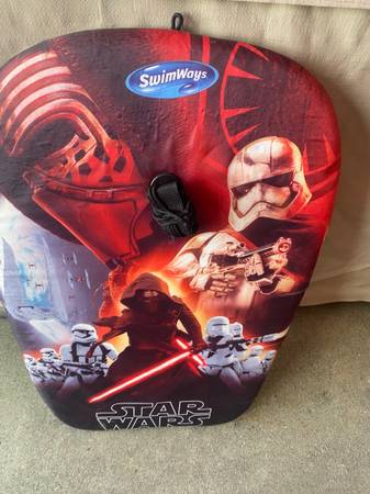 LIKE NEW STAR WARS BOOGIE BOARD MADE BY SWIMWAYS WITH ATTACHED STRAP AND CORD ALL IN GOOD WORKING CONDITION MUST SEE SEE ALL THE PICTURES CONTACT TOM AT