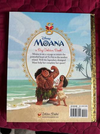 A Big Golden Book Disney’s Moana, Disney’s Classics Pinocchio and Peter Pan books. They are all like new. Asking $20 for all 3 books. Smoke free home. Like new condition. Pick up is in South San...