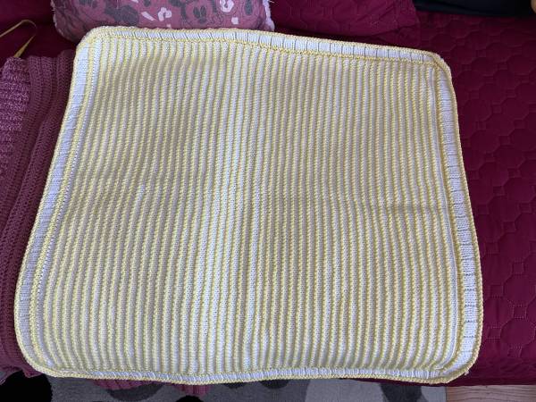 Yellow and white zig zag pattern measures approx 39” x 29” $10
