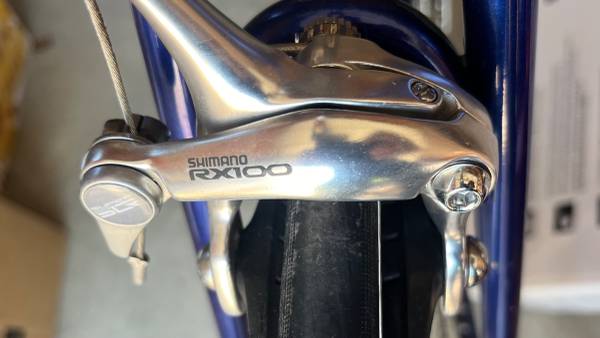 I bought this Trek carbon fiber/aluminum hybrid new in 1997 and very quickly realized it wasn't the right bike for me. Rather than get rid of it, I bought something else and let it sit in my garage for over 25 years. Silly me. Ridden less than 200 miles, it has never spent a night outside and is in near time capsule condition. Made in the USA, of all places. Includes a pair of lightly worn size 46 Shimano shoes, a set of VP Components conventional pedals I never got around to trying out, and a Performance Titanio seat I never installed. There is a spec sheet here: https://www.bikepedia.com/QuickBike/BikeSpecs.aspx?item=65863