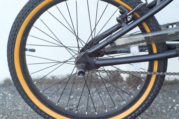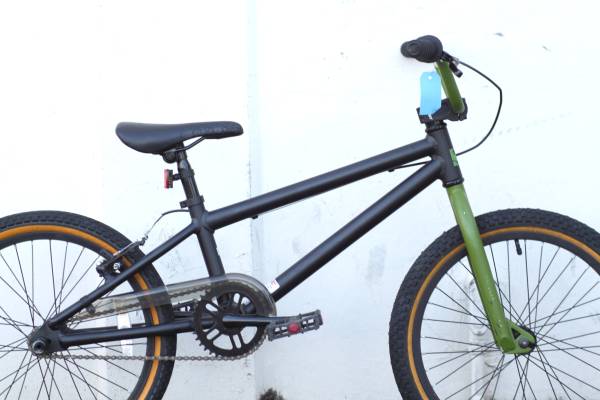 This Giant GFR F/W BMX bike has a 19” top tube and is a street-oriented machine. The bike appears to be all stock (original parts) and only lightly used. Mechanically, the bike is tuned and ready to ride. The bike comes with rear pegs and features a high-tensile steel frame and fork. The rear brake is a Tektro unit. Some very minor cosmetic scrapes in a couple of spots but in overall Very Good condition.