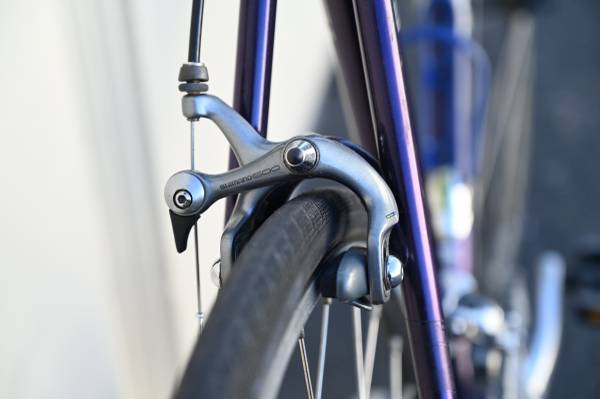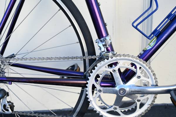 This Trek 1220 is in nice shape overall for the vintage. There are a few minor cosmetic scuffs, a and scrapes, but the finish still looks great with a partial purple to blue fade. Mechanically, the bike is tuned and is ready to ride.