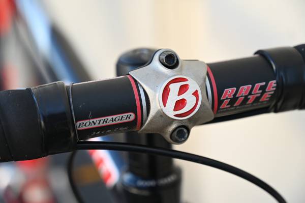 This is a nice Trek 2300 road bike with a lightweight aluminum frame, OCLV carbon fork, carbon seatstays, and Shimano Ultegra 3x9 drivetrain. The wheels are lightweight aero Bontrager Race Lite units. The 3x9 Shimano Ultegra is ready to tackle the steepest climbs, if you are. This bike is in overall Good to Very Good condition and it is tuned and ready to ride. This is a true made-in-the-USA model. This would make a great “starter” road bike for the rider looking to try more challenging rides. It can also easily pull daily commuter duty. The bike is fast, light and responsive.