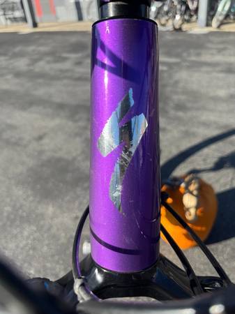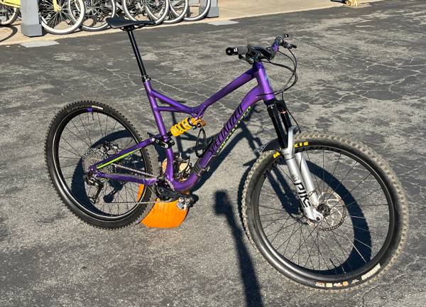 Frame scratch under downtube from truck tailgate pad transportation.