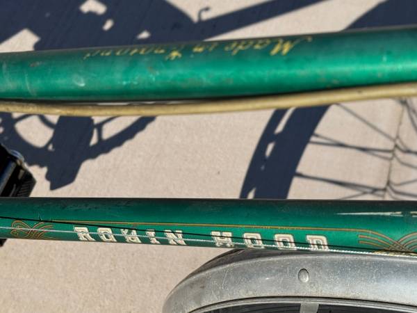 Robin Hood bicycle "Sherwood Arrow" (Raleigh made).~ 21" from center of bottom bracket to top of seat tube. 60's era. It's an unusual brand and a fun and smooth ride!