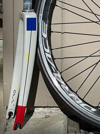 Includes both flat crown steel (basically Richard Sachs) fork (I have one on my cross bike), and a coveted Pegoretti carbon Falz v2.