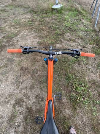 Selling my Transition Spire size large in factory orange. It's been a wonderful bike for me but it's time for a new rig. This is an exceptional one bike quiver for all sorts of riding but it loves going fast. I've made a couple of upgrades to the original build including oneup carbon bars, new grips, and new tires and the rest of the build is pretty bulletproof.