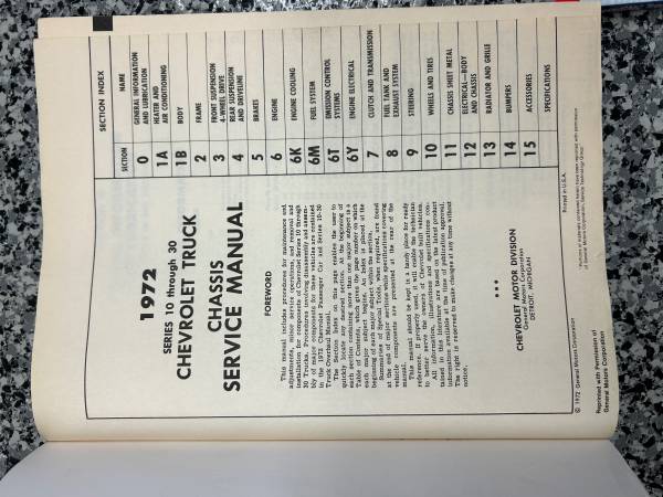 Nearly new condition, reproduction service manual 1972 Chevy Chevrolet C 10 pickup truck.