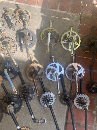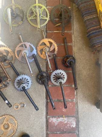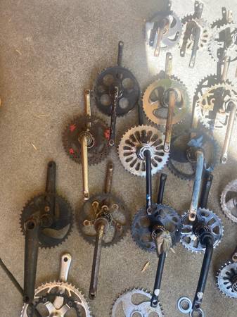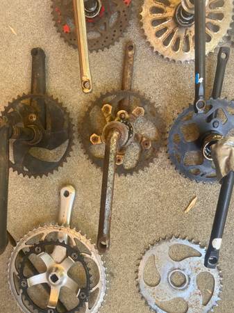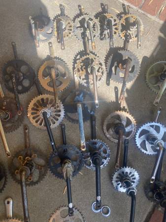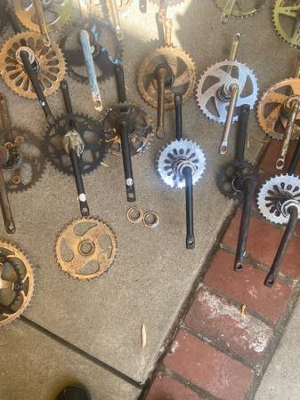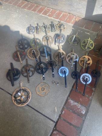 LOTS OF BICYCLES CRANKS AND SPROCKET A LOT DIFFERENT SIZES $5 AND UP I HAVE A LOT OF OTHER BICYCLE PARTS FOR SALE MUST SEE SEE ALL THE PICTURES CONTACT TOM AT