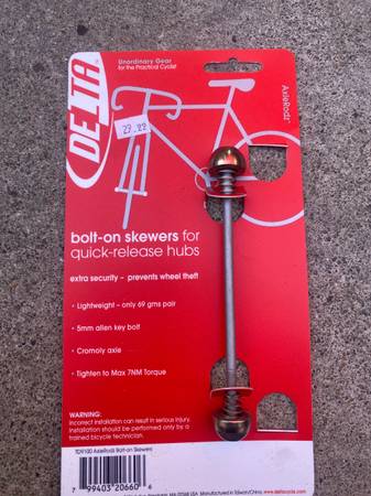NEW DELTA BOLT ON SKEWER FOR QUICK RELEASE FRONT HUB PREVENTS WHEEL THEFT MUST SEE SEE ALL THE PICTURES CONTACT TOM AT