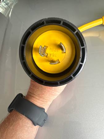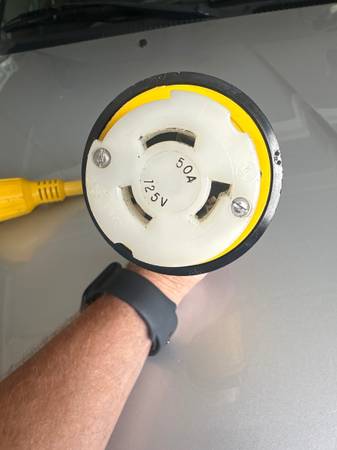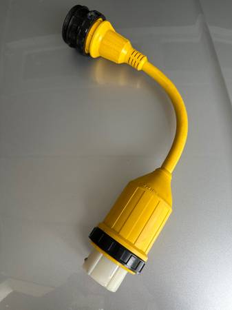This adapter is a 50 amp female to a 30 amp male. It was used last year maybe two or three times. It is still in new condition. I can deliver between Half Moon Bay and Antioch if that helps. If you were to buy a new one through West Marine, they sell for $199 plus tax.