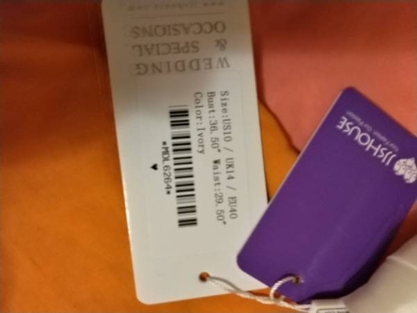 Beautiful New and unused Ivory Wedding/ Special Occasion Dress., Shoulder less. from JJs House. Size:: US: 10. UK:14 Bust: 36.50" Waist: 29.50" Color: Ivory $50-