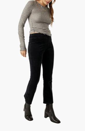 - Features: Side zip closure, flat front and back, cropped inseam, soft velvet fabrication