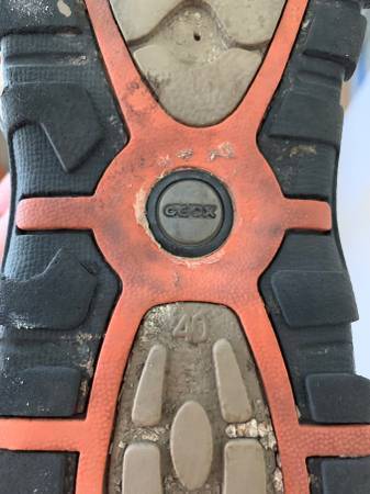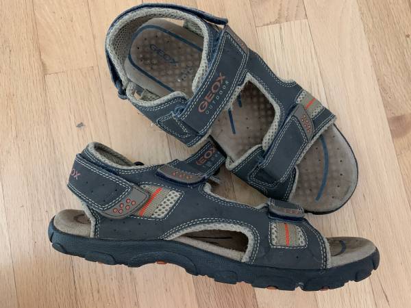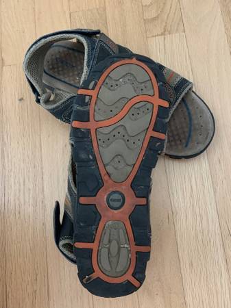 GEOX sandals size US 6 / EUR 40 adjustable with 3 velcro staps breathable sole EUC color: graphite with beige and orange accents $25