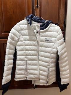 Tommy Hilfiger Women's packable lightweight Puffer Jacket- size XS but fit like a S= New- never worn White color with Blue hood