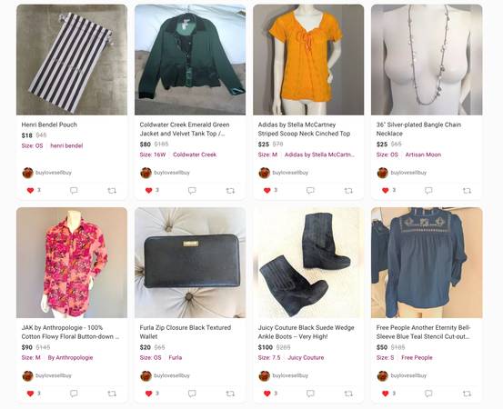 Hello! If you are local to 94025 and see anything in my closet that you would like to come by and see/try-on, let me know! My Poshmark username is @buylovesellbuy. Lots of (authentic) designer stuff, as well as lesser known, really high quality items -- all at great (and negotiable!) prices! Price depends on the item and discounts if you buy multiple items. The prices you see the items listed at are what my items are selling for on Poshmark. Because Poshmark takes a 20% cut, you can assume that I'll sell to you for 20% of the listed price (so long as you pay in Cash or equivalent).