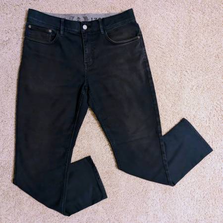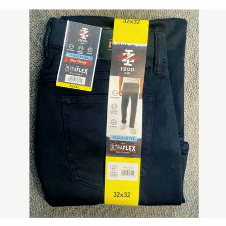 Selling a pair of pre-owned and worn mens pants in dark blue color. In good condition without any stains, holes, rips or other defects. Feature 5 pockets, UltraFlex waistband, comfortable stretchy fabric.