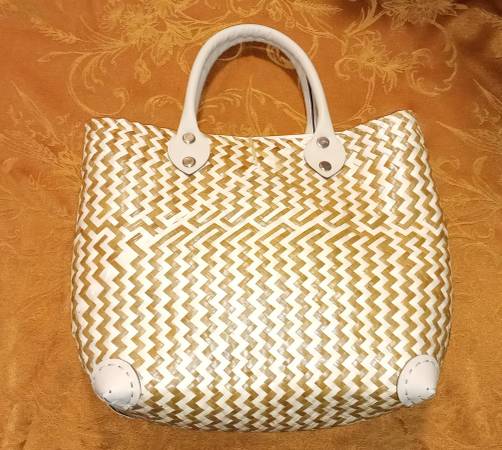 14" wide, 16" high (bottom to top of handle), 2 1/2" deep