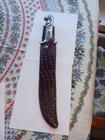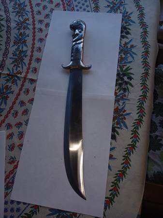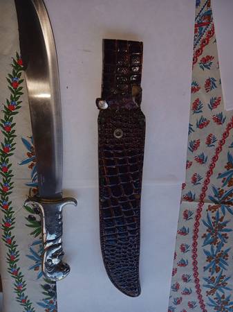 Up for sale one , Rare Vintage Fury model #33077 Fixed Blade Knife Trailing Point 13" 440 Stainless Taiwan Blade Steel , 6" handle 19" overall length . Knife is Used and has some pitting on handle, blade is in excellent shape, overall in good shape for a Unique old vintage Large Fixed Blade knife. Includes the original sheath! $40 cash or best offer! I'll ship if needed. Thanks for looking