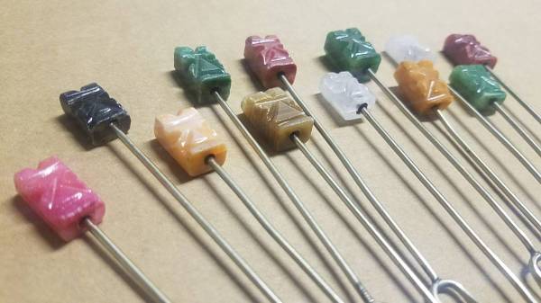 This set of 12 food picks were purchased in the 1970s by my parents on their ventures through Latin American. The picks each are topped by carved natural stones and make for a great addition to any gathering you have. They never used these picks and only purchased them for their artistic appeal. See photos for more details.
