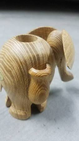 Vintage handcrafted wood elephant toothpick holder figurine in perfect shape. Made by Papel, it is approximately 3" tall and 4" long.