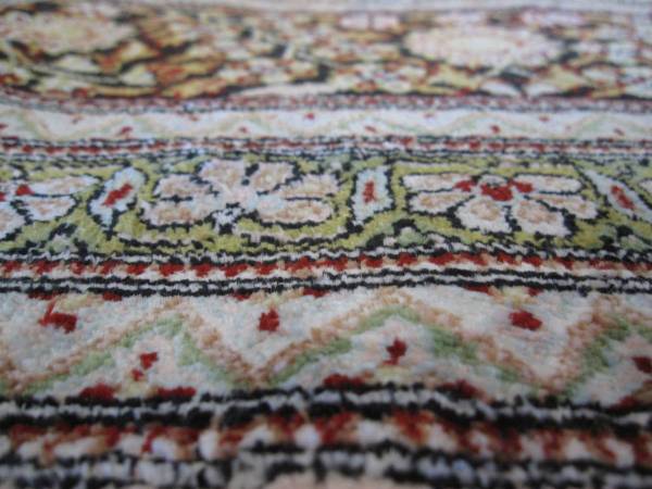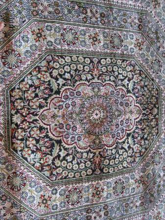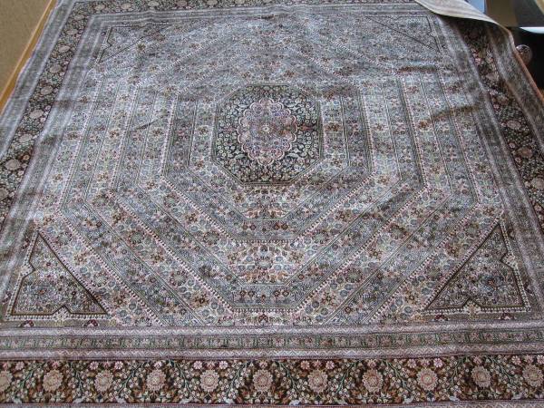 This silk rug has to be seen in person to experience its beauty but I have included many images from different angles to give you the best look possible through pictures. It measure 8ft x 8ft and contains 120 knots per square inch.