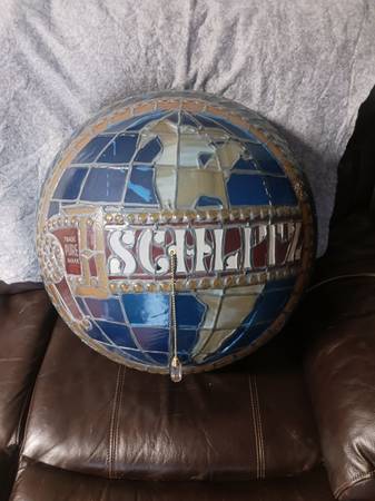 1968 Schlitz globe lights up as it should. This one is set up to hang from the wall and does not have a swag chain for ceiling hanging. $225 cash. Thanks for looking game room man cave bar garage lighted beer sign retro beer sign man cave she said chick cave neon sign.