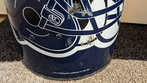 Vintage 1990's Chicago Bears Trash Can. Some dents and scratches but looks good and is clean. 10" x 19" tall. Near Skyline Blvd. nfl pro football memorabilia garbage waste bin pail basket