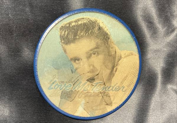 1956 "Love Me Tender" "Sincerely" Vari Vue Flasher Pin Pictorial Productions Elvis Presley Music Collectible Memorabilia
