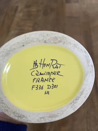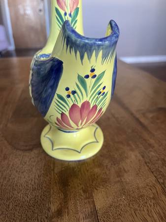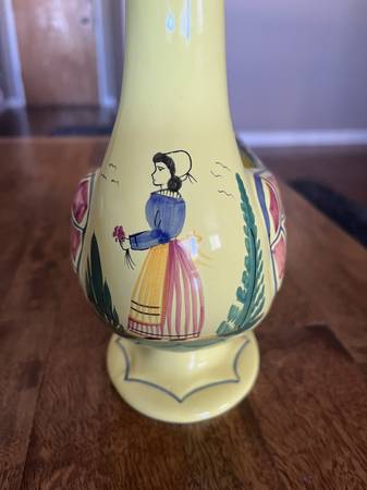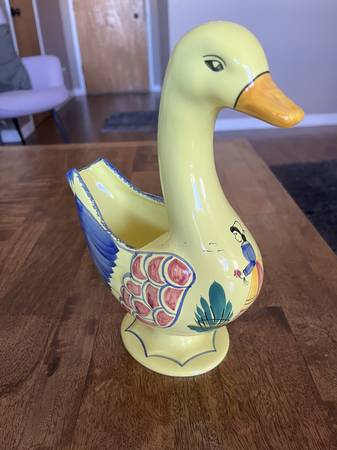 Henriot Quimper Signed Yellow Duck Pitcher/Vase/Planter 10" tall by 8" long French farmhouse decor featuring Breton peasant. price is firm