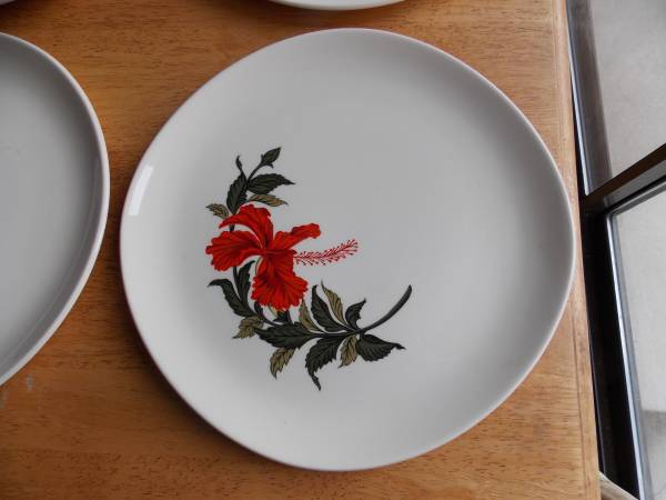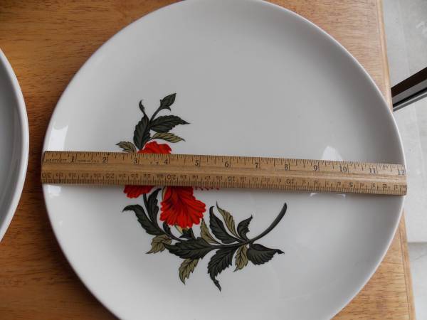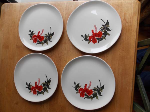 Lot of 4 vintage Crooksville Iva Lure 12" round serving plate platter. $20 for all 4. No chips.