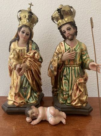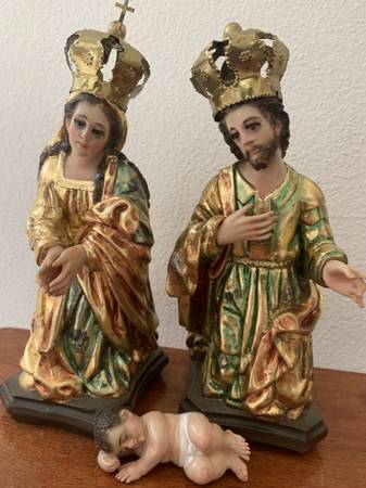 Nativity scene, ceramic , very elaborate hand painted and delicate features, such as hand with individual fingers and eye lashes Consist of 3 statutes. Excellent condition. Please TEXT for best...