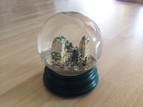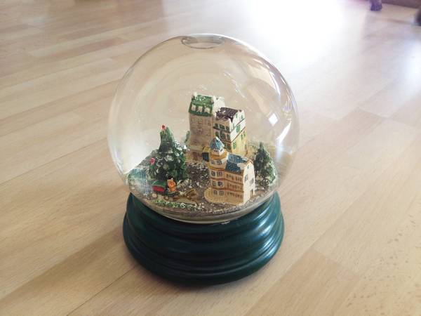 Circa late 1980s, maker unknown. Quality item in top condition, so rare to have a snow globe over 30 years old intact.