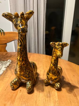 Assorted giraffe figurines in various materials and sizes.