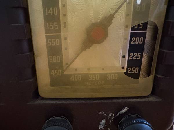 Works with some static. The issues are that it's missing the back, clear plastic broken, and paint around knobs. This is a model 333, and made sometime between 1940-1941.