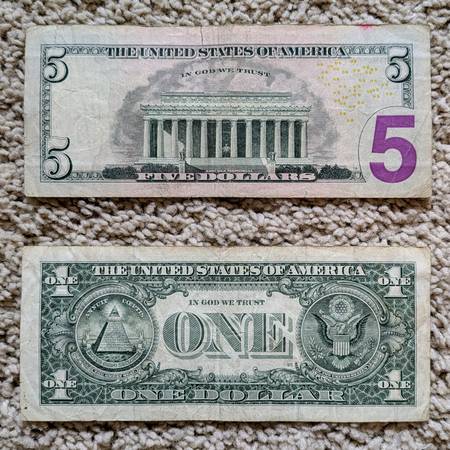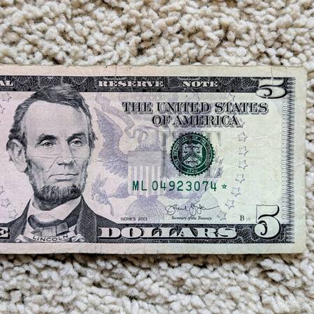 Here is a pair of STAR Federal Reserve notes of $5 and $1 dollar denominations. Both are in good circulated condition. Both serial numbers start with zero 0. Selling them together as a single batch - will not sell individually. You get the exact bills in the photos.