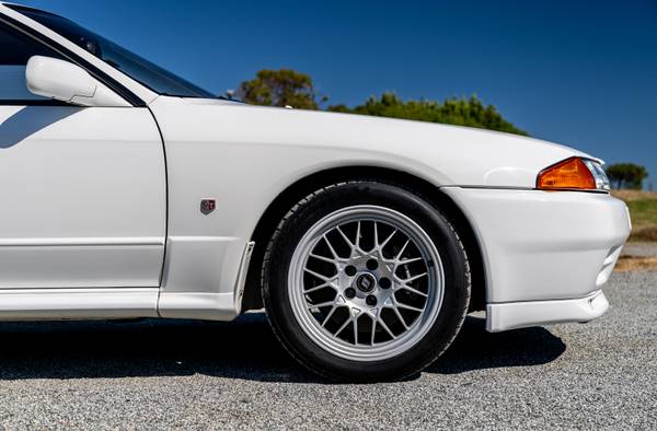 Exceptional 1994 Nissan Skyline GT-R R32 V-Spec II in rare luster white features excellent overall condition and only 39K miles (62K km) on the odometer. A special find, completely stock, no rust, full maintenance records and ready to go. This R32 V-Spec II belongs to the first generation of the Skyline GT-R series dubbed “Godzilla” (1989 -1994) and features the RB26DETT engine and classic 1990’s styling. This is a late model R-32 V-Spec II that has a track-focused suspension setup with an emphasis on agility. A favorite of driving enthusiasts due to the emphasis on power and handling and the no nonsense looks and interior.