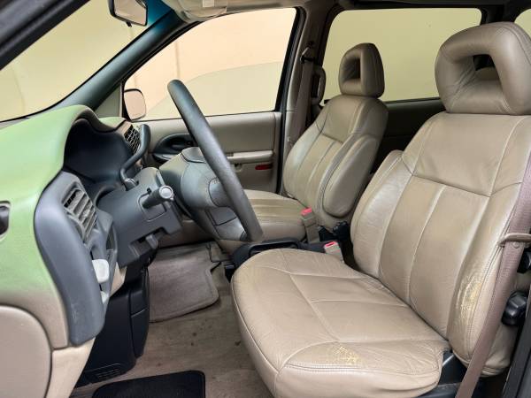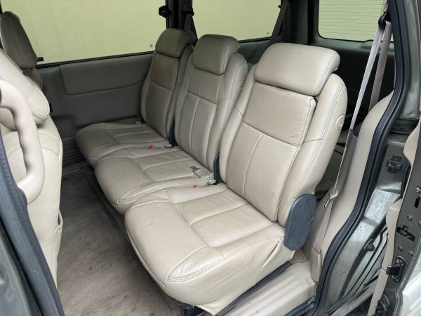 Comes with automatic sliding doors - ac - heater - power windows - power locks - rear ventilation - leather seats - CD - stock radio -two keys - no fob key - clean title - smogged - carfax - paint is green/gray olive!