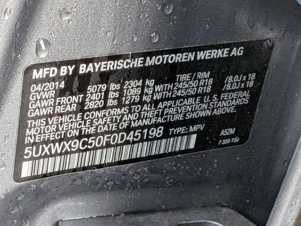* Black; Nevada Leather Upholstery * Space Gray Metallic * Leather Seats * Rear SpoilerThis vehicle includes a Money-Back Guarantee* and passed our precise inspection process. Best of all the price you see is the price you pay. No haggling. No back and forth. No pressure. And this price is so good it is guaranteed.This 2015 BMW X3 xDrive28i is proudly offered by BMW of Fremont This BMW includes: NAVIGATION SYSTEM Navigation System Telematics Hard Disk Drive Media Storage MP3 Capability PARK DISTANCE CONTROL Automatic Parking Rear Parking Aid DRIVER ASSISTANCE PACKAGE Rear Parking Aid Back-Up Camera POWER FRONT BUCKET SEATS W/DRIVER SEAT MEMORY Mirror Memory Seat Memory Power Passenger Seat Power Driver Seat Bucket Seats HEATED FRONT SEATS Heated Front Seat(s) SPACE GRAY METALLIC SATIN ALUMINUM ROOF RAILS BLACK, NEVADA LEATHER UPHOLSTERY Leather Seats FINELINE ANTHRACITE WOOD TRIM PREMIUM PACKAGE HD Radio Generic Sun/Moonroof Satellite Radio Power Door Locks Keyless Entry Passenger Adjustable Lumbar Sun/Moonroof Driver Adjustable Lumbar Dual Moonroof PANORAMIC MOONROOF Generic Sun/Moonroof Sun/Moonroof Dual Moonroof *Note - For third party subscriptions or services, please contact the dealer for more information.* Gone are the days of SUVs being the size of a tank and handling like one. This BMW X3 is a perfect example of how SUVs have evolved into vehicles that are as refined as they are rugged. You deserve a vehicle designed for higher expectations. This BMW X3 xDrive28i delivers with a luxurious, well-appointed interior and world-class engineering. This vehicle has an added performance bonus: AWD. It improves handling on those winding back roads, and gives you added safety and control when driving through wet and snow weather conditions. You can tell this 2015 BMW X3 has been pampered by the fact that it has less than 94,968mi and appears with a showroom shine. Time is money, and thanks to the navigation system on this BMW X3, you'll be spending a whole lot less time getting to your destination. Added comfort with contemporary style is the leather interior to heighten the quality and craftsmanship for the BMW X3 xDrive28i. More information about the 2015 BMW X3: The X3 is one of the quickest and most nimble-handling of the compact luxury-brand crossovers; yet it's also one of the most fuel-efficient in 4-cylinder xDrive28i form. The sensible, yet stylish cabin strikes a great balance between plush comfort and practical family sensibilities, and it has one of the more comfortable back seats in its class; while the number of useful high-tech features and driver aids is impressive. Interesting features of this model are Quick and nimble, very fuel-efficient compared to other crossovers, comfortable, well-appointed cabin, and long list of technology features and upgrades*Money-Back Guarantee is valid for 5 days or 250 miles, whichever comes first. Subject to certain terms and conditions. See store for details. Some restrictions apply.