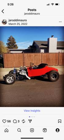 1915 Turtle-Back Roadster. CA. Titled and Registered as a 1915 Buick . Steel Body, Early Andy Brizio (Andy’s Instant T) Frame, SBC, Automatic ...I'm the 2nd owner and have owned the car for 30 years. Built in Bay Area where it still resides. The car is loud and a blast to drive. Unfortunately I've just run out of room. You couldn't even start to build this car for a fraction of what I'm asking. Miles and condition of motor unknown. Garage kept on tender and starts first try every time. Runs cool all day. Recent maintenance on car (ie: rebuilt carbs by Oley's, brakes, all lines, etc.).. 11K