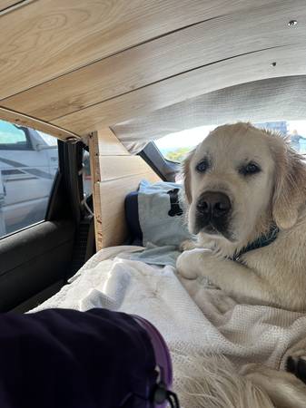- Other storage areas: space for bags behind front seats, tent poles or other skinny items under bed, and small item storage (sheets, etc) behind wall paneling in the back (panels slide open)