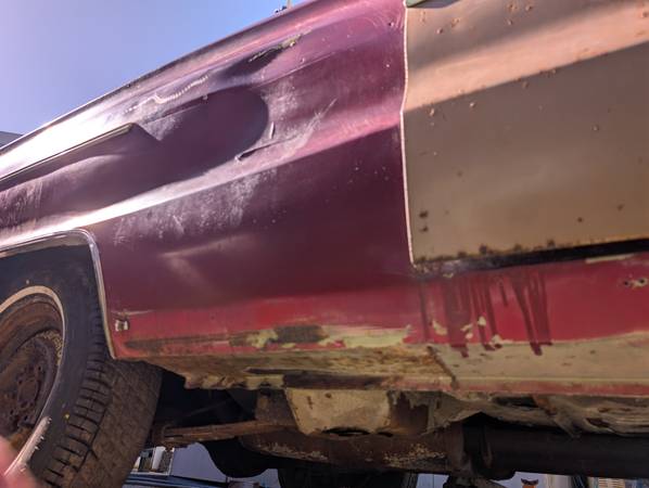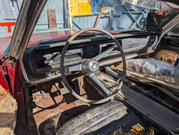 !966 Coronet 500 convertible, needs work. Originally gold with a 383 4bbl engine. Now has a running 383 2bbl. 727 automatic transmission. Bucket seats with center console. Body is solid with the only rust-through in trunk floor near wheel wells. The rest of the trunk floor, passenger area floor and rocker panels are very solid.