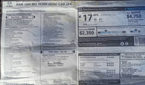 * Manufacturer's Statement of Origin * Mirrors : Heated Mirrors