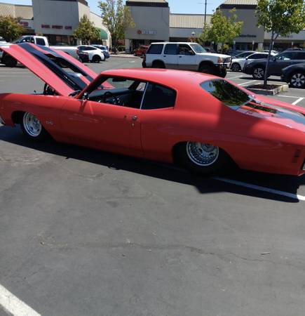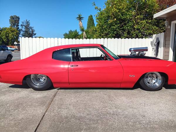 Hi I have a super clean excellent condition 1971 chevelle SS. The paint job and body work on this car is a 9 out of 10 it’s absolutely perfect. It has a 454 big block weiand 871 blower 91 octane pump gas car. with an Art Morrison chasis with full air ride. Full tub, Dana 60 rear end with 411 gears. Built turbo 400 trans with trans cooler. Hydro boost brake system with big rotor willwood on all 4. Brand new Hoosier tires. Beautiful viper red paint. Full custom interior. Two new Holley 750s. Everything works great on this car needs nothing. California car zero rust pink slip in hand.