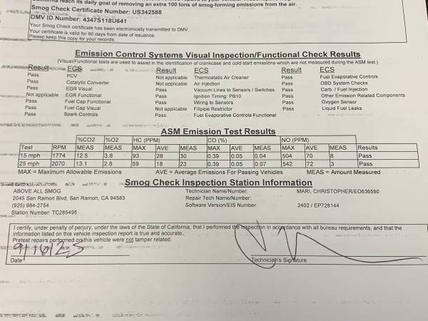 - Passed CA smog on 9/16/25 – certificate included